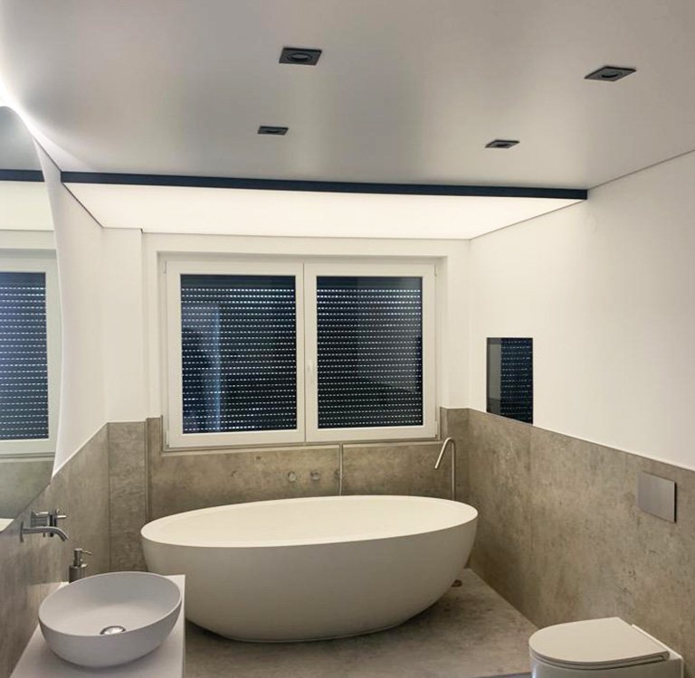 Die meisten Objekte werden mit Einbaustrahler mit verschiedenen Größen und Versionen installiert. Wir verfügen jedoch über 100 einzigartige LED Profile, die so speziell sind, dass die meisten Kunden begeistert sind von der Möglichkeiten, die wir bei Stil Spanndecken anbieten.